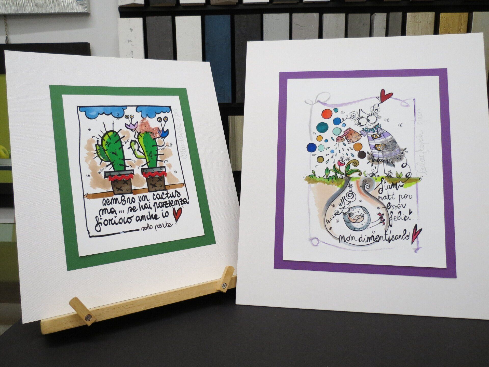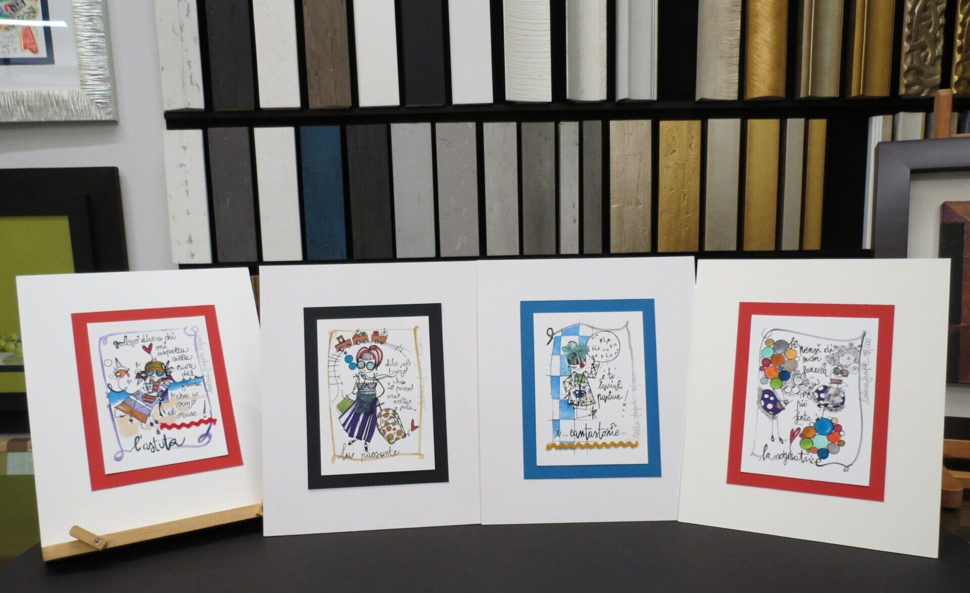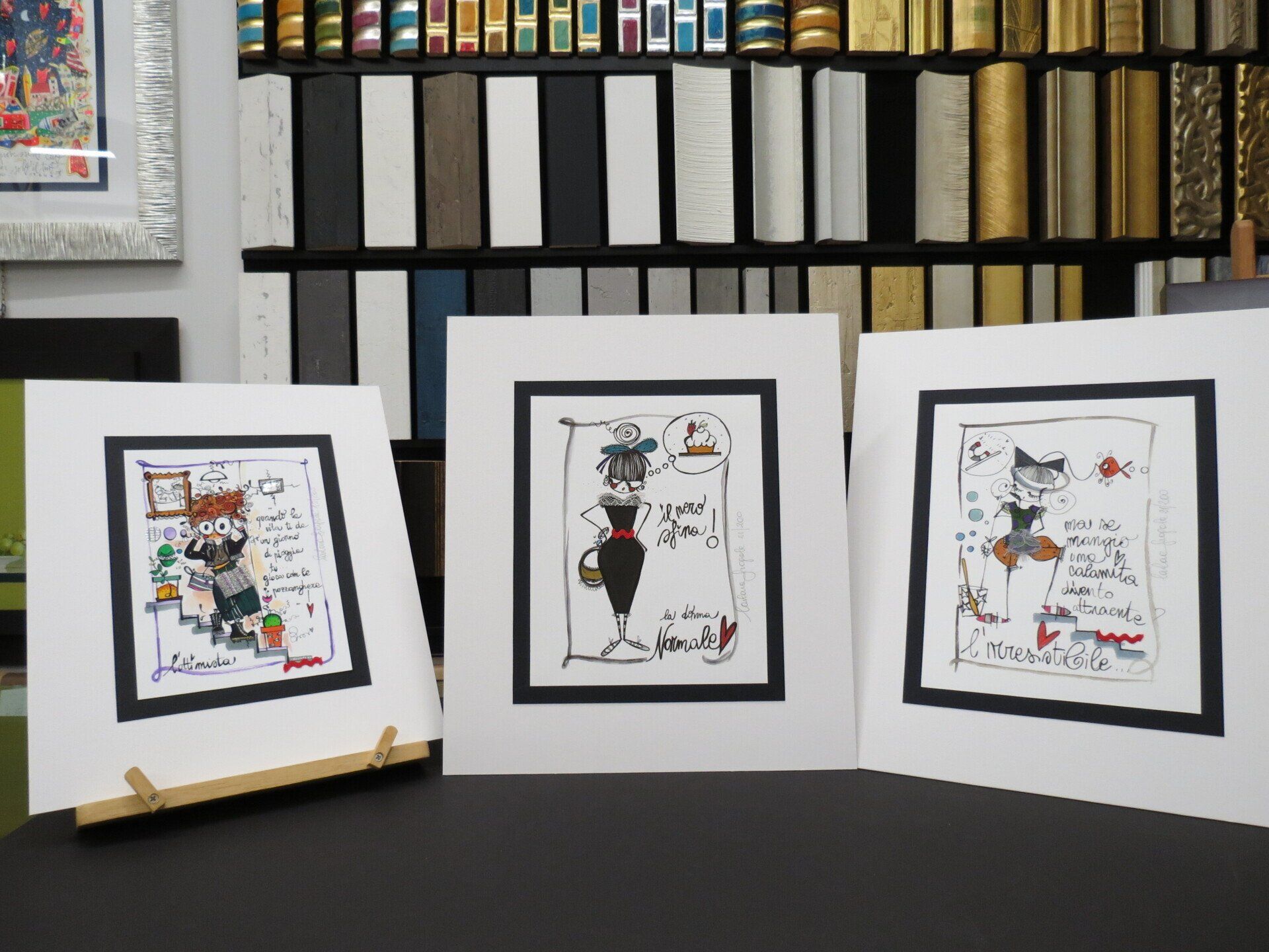 Inoltre, presso il laboratorio interno, si realizzano cornici su misura perfette per i lavori di grafica.